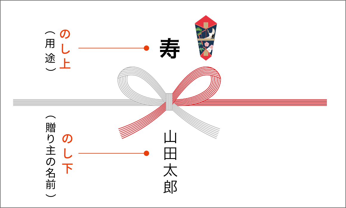 用途に合わせたのし紙を無料でお付けします。のしの種類、印刷内容の指定の仕方をご説明します。